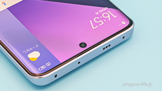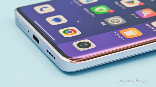 さらにベゼルも全体的に細くなっています。安いスマートフォンだと下部のベゼルを太めにしてコストカットしているのですが、Redmi Note 13 Pro+はわずか2.37mmとのこと。まるでハイエンドモデルのような見た目です。