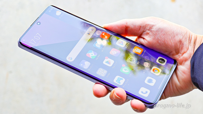 また、画面はサイドが緩やかにカーブしたエッジディスプレイを採用。インカメラを収めたパンチホールも小さく目立ちません。