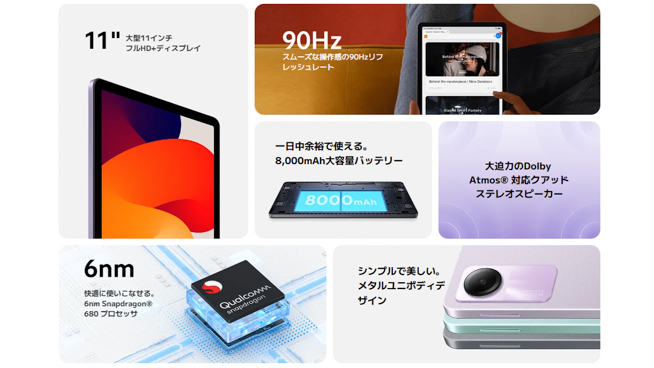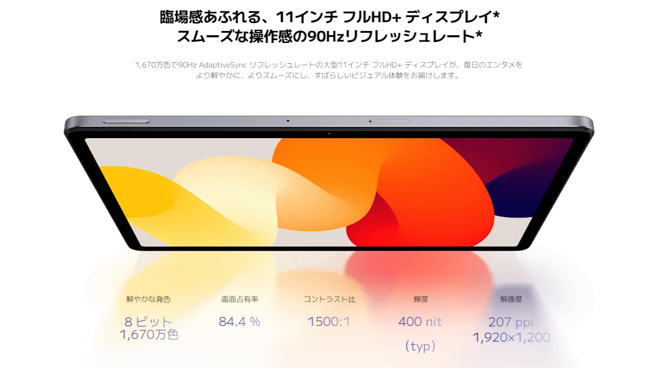 昨年発売のRedmi Padの廉価版にあたる製品ですが、読書や動画など最低限の用途では十分活躍できそうです。