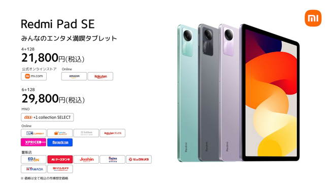 2023年9月27日、シャオミ・ジャパンは新型タブレット端末「Redmi Pad SE」を日本向けに発表しました。