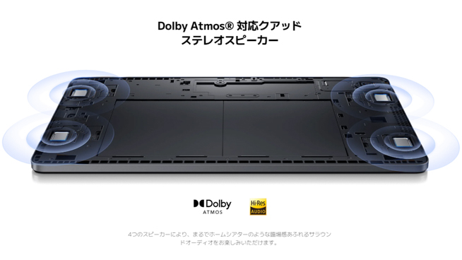 | 音響 | クアッドステレオスピーカー, 3.5mm イヤホンジャック, Hi-Res, Dolby Atmos |