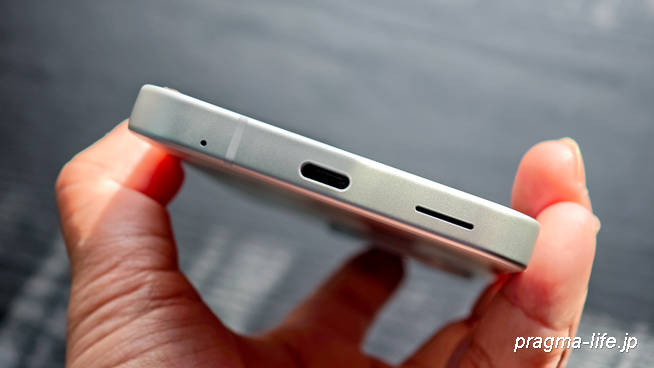 そして横幅も約73mmとコンパクトサイズ。手が小さめな筆者でも持ちやすいスマホだと感じました。