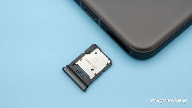 SIMスロットはnanoSIMとmicroSDカードがそれぞれ1枚ずつ入る仕様。また、eSIMにも対応しているので、nanoSIMと組み合わせてデュアルSIMにもできます。