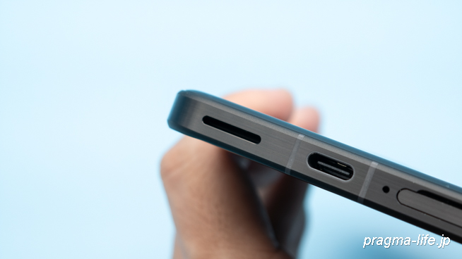 イヤホンジャックはありませんが、天面に加えて画面上部にもスピーカー穴があり、底面のものと合わせてステレオスピーカーとなっています。