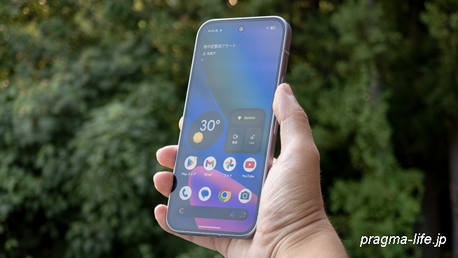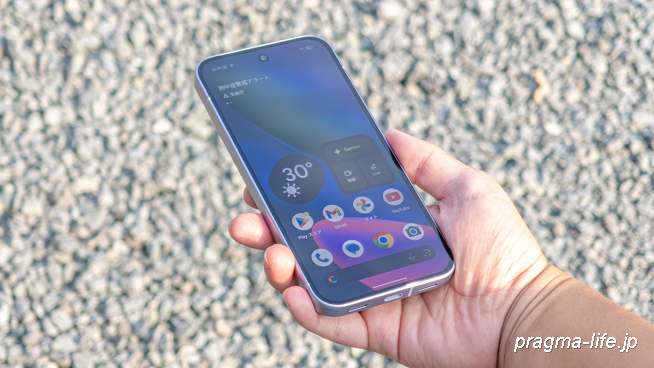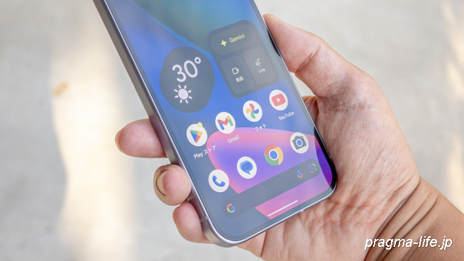 200gくらいになると重さを感じるスマホが多くなりますが、Google Pixel 10も同様にズッシリとした感じがあります。