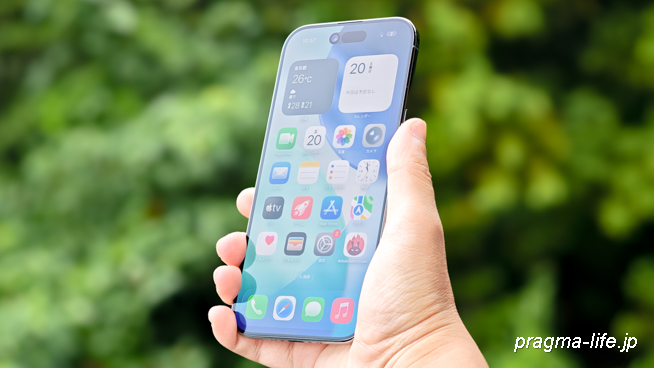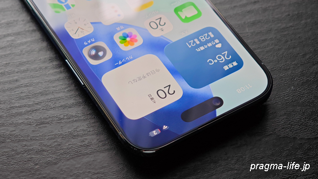 画面保護は背面よりも強力なCeramic Shield 2。もちろんDynamic Islandも対応です。