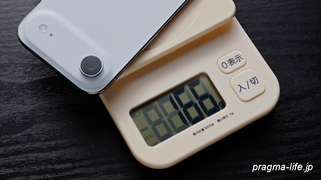 iPhone Air本体は実測で約166g。公称は165gとなっているので、1g分は誤差の範囲内かと思います。