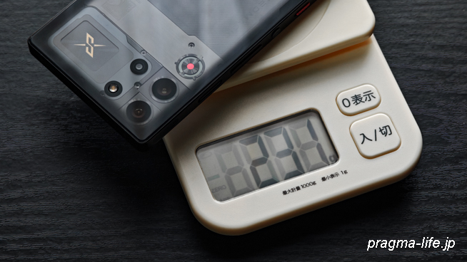 REDMAGIC 10S Proの本体は実測で約231gでした。公称重量よりわずかに重い分は添付されているフィルム分と思われます。