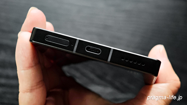 一方、横幅は76.14mmとやや大きく、角ばった形状もあって、筆者のように手が小さめだと片手操作はだいぶ難しいサイズ感です。