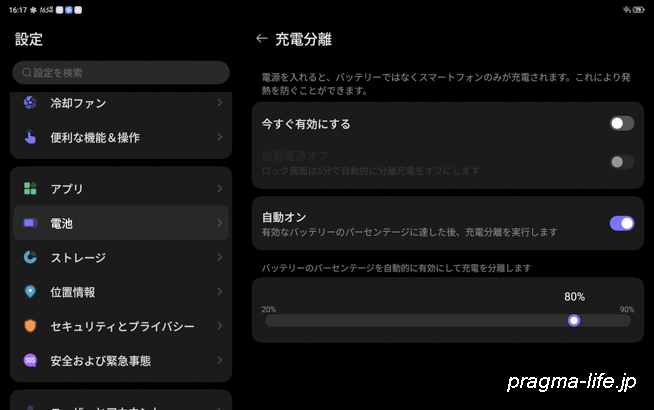一方、この充電分離を使えばバッテリーの発熱を抑えることができるため、端末の性能を維持したままバッテリーを保護し快適なプレイを持続できます