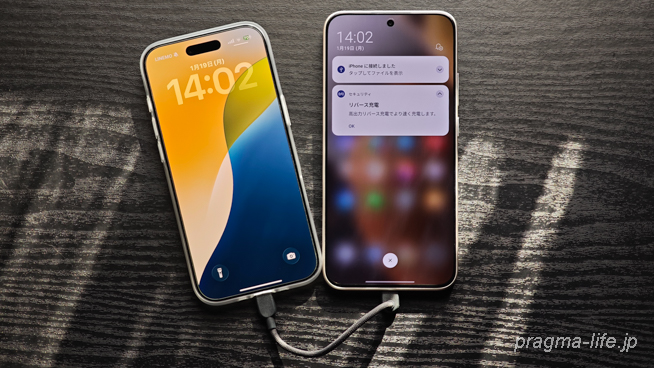 ワイヤレスイヤホンを充電したり、別のスマホを充電したりと便利な機能です!