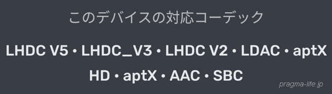 また、対応するBluetoothコーデックでもaptX Adaptiveには非対応です。