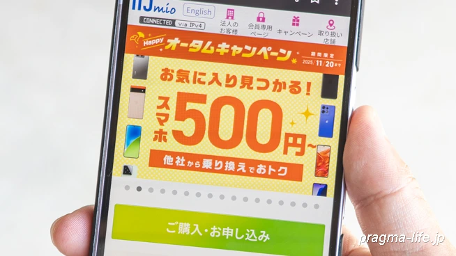 端末価格やキャンペーン情報など詳細は以下のリンク先(IIJmio公式)にてご確認ください。