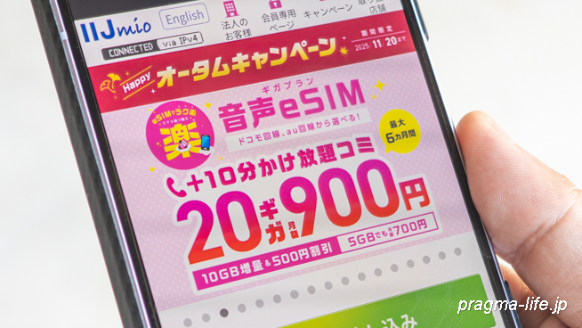格安SIMのIIJmioは2025年11月20日21:59まで「ハッピーオータムキャンペーン」を開催中ですが、2025年11月5日より「Black Fridayセール」も始まりました。