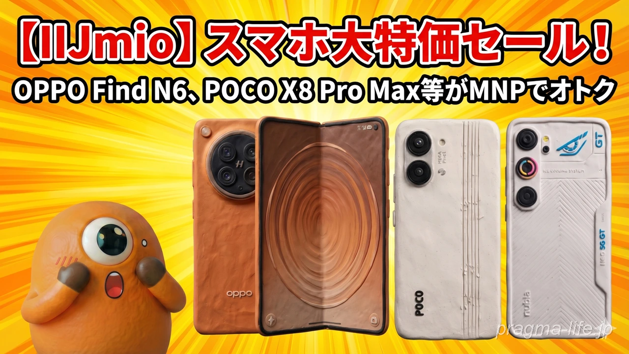【IIJmio】スマホ大特価セール!OPPO Find N6、POCO X8 Pro Max等がMNPでオトク