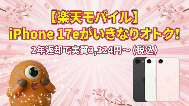 楽天モバイルでは、iPhone 17e(256GB)が「買い替え超トクプログラム」により実質3,324円(税込)となり、非常にお得です。