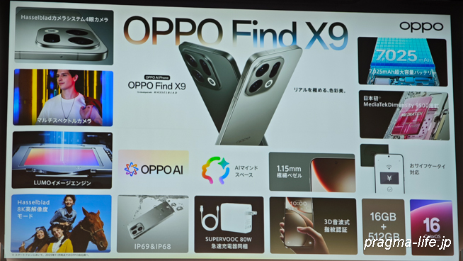 OPPO Find X9は、SoCにメディアテック製SoC「Dimensity 9500」を搭載するフラッグシップスマートフォンです。