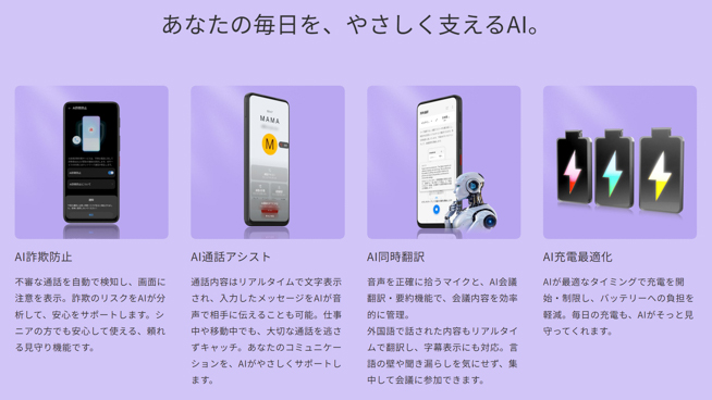 AI通話アシスト、AI同時翻訳、かこって検索などの機能も搭載しています。
