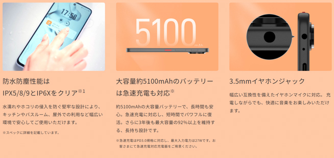 | 画面 | 6.7インチ, TFT液晶, 解像度: FHD+ (2,400×1,080), リフレッシュレート: 120Hz |