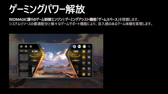 独自のゲーム専用のアシスト機能「ゲームスペース」も搭載されています。