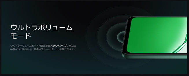 サウンド面では、音圧を最大300%までアップできるウルトラボリュームモードに対応しており、駅などの騒がしい場所でも音声やアラームがしっかり聞こえるとのこと。