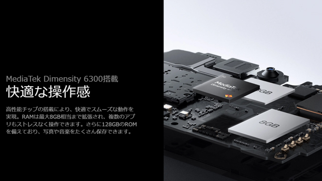 OPPO A5 5Gは、SoCにメディアテック製の「Dimensity 6300」を搭載しています。