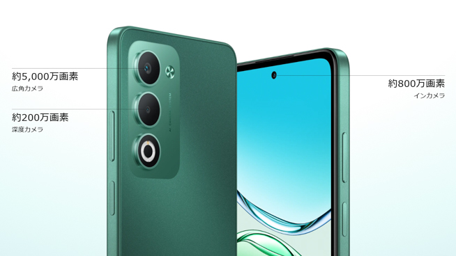 | アウトカメラ | 広角: 約5,000万画素 (F値1.8) 深度: 約200万画素 (F値2.4) |