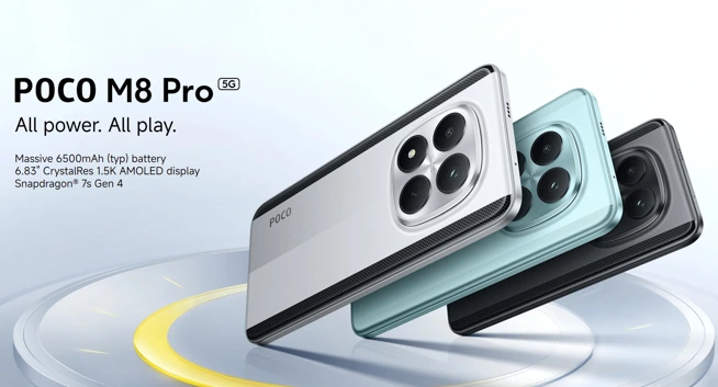 POCO M8 Pro 5G 発表!Snapdragon 7s Gen 4搭載のミドルハイモデル。IP69Kの強力な防水に対応