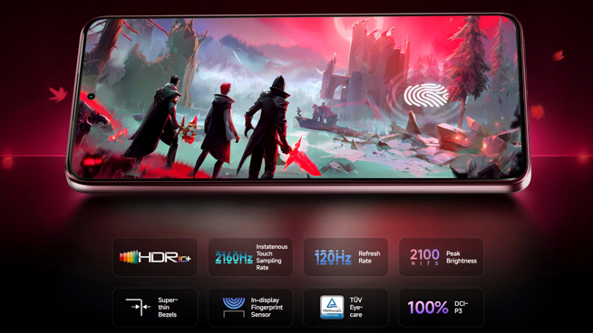 解像度はFHD+で最大120Hzのリフレッシュレートに対応しており、鮮やかな映像と超高速スクロールを実現していると謳われています。