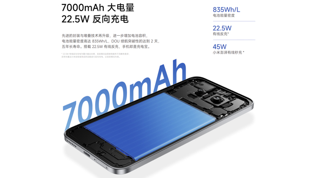 | 電池 | 7000mAh, 45W有線急速充電, 22.5W有線リバース充電 |