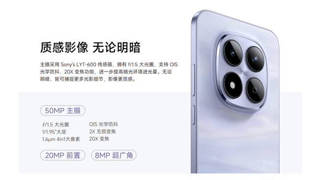 REDMI Note 15 Proは、5000万画素メイン+800万画素超広角のデュアルカメラを搭載しています。