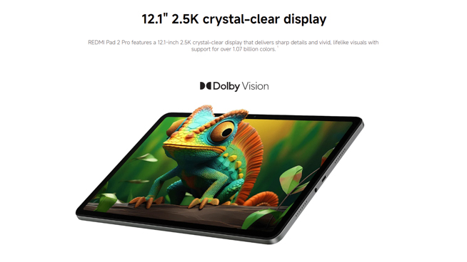 Redmi Pad 2 Proのディスプレイは、12.1インチの2.5K大画面液晶を採用。