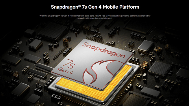 Redmi Pad 2 Proは、クアルコム製のSoC「Snapdragon 7s Gen 4」を搭載するミドルクラスの製品です。