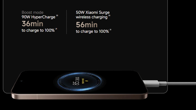 Xiaomi 15T Proは、5500mAhの大容量バッテリーを搭載し、90W有線急速充電に対応。さらにワイヤレス充電にも対応しています。