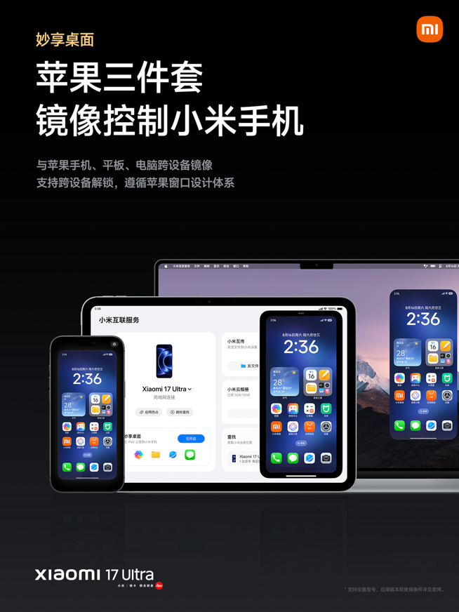 そのほか、iPhone上でXiaomiスマホをミラーリング操作できるなど、Appleエコシステムとの高度な連携機能も搭載されています。