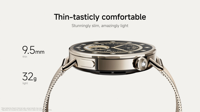 このモデルは、突起部を除いて9.5mmというスリムなデザインと、ストラップなしでわずか32gの軽量設計により、終日着用に適していると謳われています。