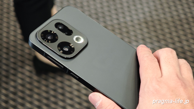 まず手に取って最初に感じたのは、そのビルドクオリティの高さです。 「OPPO Find X9」の筐体は、側面がシャープなメタリック仕上げであるのに対し、背面は落ち着いた雰囲気のマットガラスが採用されています。