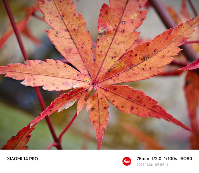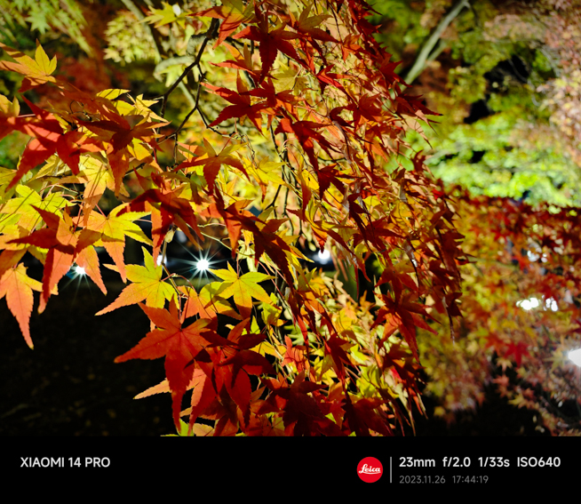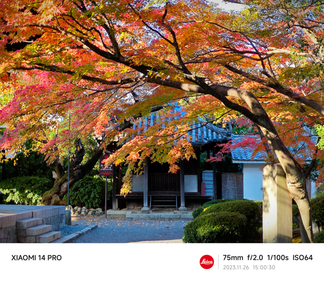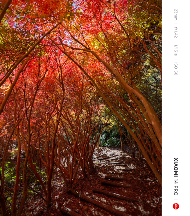 Xiaomi 14  Proは特に色表現が素晴らしいスマホなので、秋の色づいた紅葉を撮るには最適のスマホでしょう。