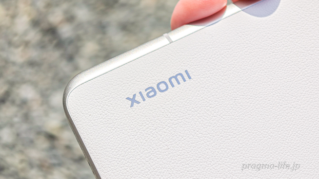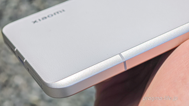背面パネルにはシャオミ独自開発の合皮を使用。見た目が良いだけでなく、手に吸い付くような質感でグリップ感良好です。