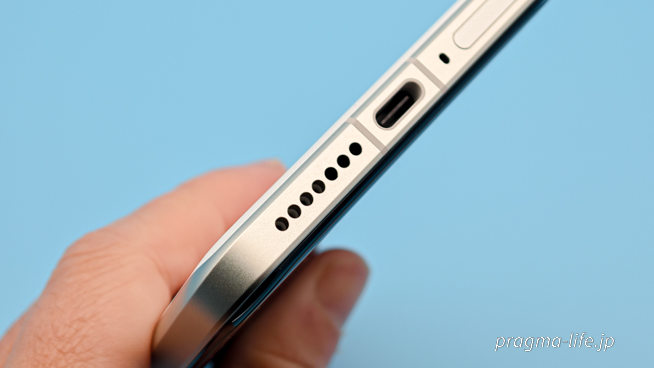 左からスピーカー穴、Type-C充電ポート、マイク穴、SIMスロット
