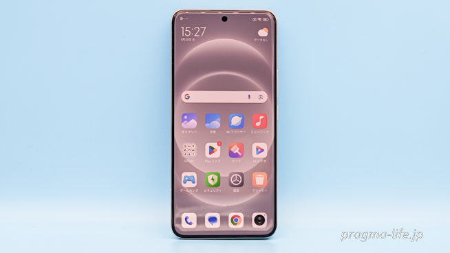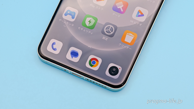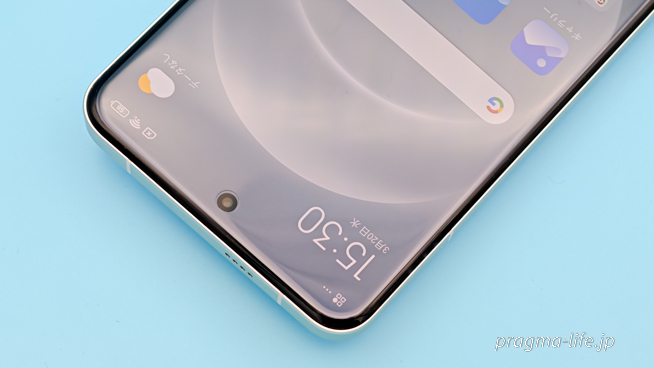 そして、特徴的なのがシャオミ独自のクアッドマイクロカーブディスプレイ。具体的にはベゼル部分がカーブしており、表示部分はほぼフラットという形状です。