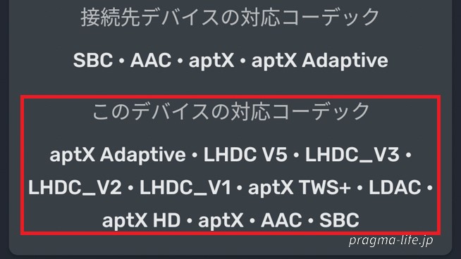 Bluetoothコーデックは aptX AdaptiveやLDAC などの高音質コーデックに対応していました。