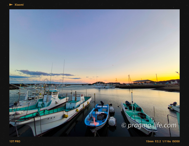 夕暮れの港。少し寂しげな雰囲気が美しい