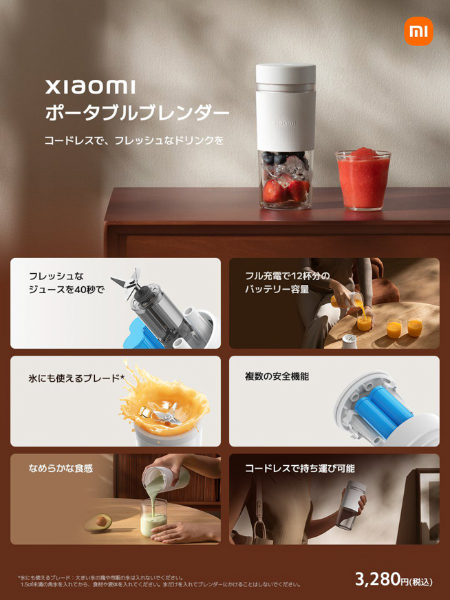 2025年5月20日、シャオミ・ジャパンは「Xiaomi ポータブルブレンダー」「Xiaomi ポータブルフォトプリンター 1S」を日本向けに発表しました。