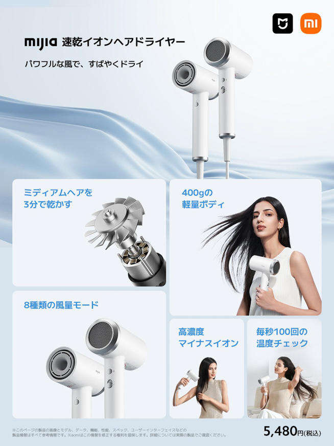 2025年11月21日、シャオミ・ジャパンは「Mijia 速乾イオンヘアドライヤー」を日本向けに発表しました。「Mijia(ミージャ)」ブランドとしては初めての日本投入製品となります。