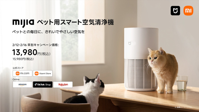 2025年12月23日、シャオミ・ジャパンは同社のホーム製品ブランド「Mijia(ミージャ)」から、「Mijia ペット用スマート空気清浄機」「Mijia 毛玉リムーバー 2」「Mijia ツールキット」「Mijia 電動ロータリーツールキット」の4製品を発表・発売しました。