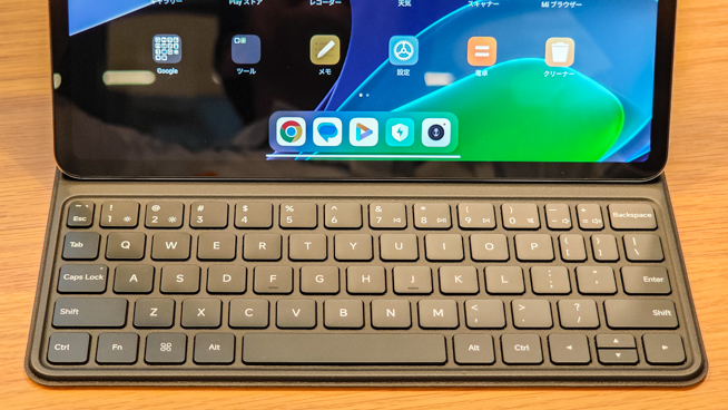 軽い打鍵感で打ち心地良好。キーボードはもちろん日本語対応です。さらにBluetooth不要で、装着すれば自動で接続されるため特に設定の必要がありません。