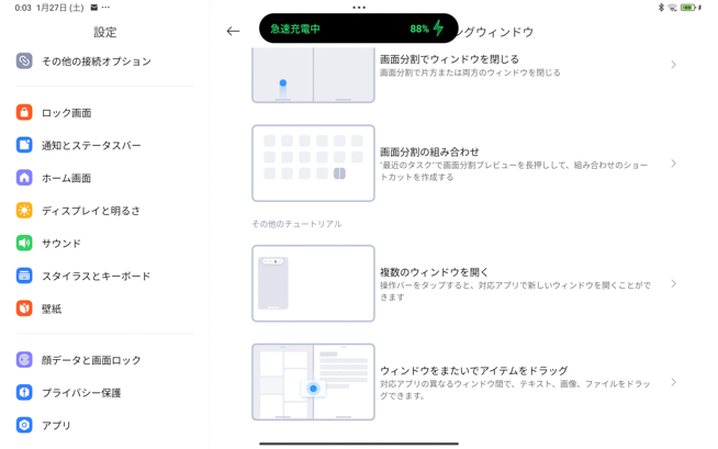Xiaomi Pad 6は元々処理性能は高め(Snapdragon 870搭載)なので、現時点でそこまで大きな動作の違いは感じられませんでしたが、心なしかアプリの開閉はスムーズになった気がします。また、長く使うことでも差が出てくることでしょう。