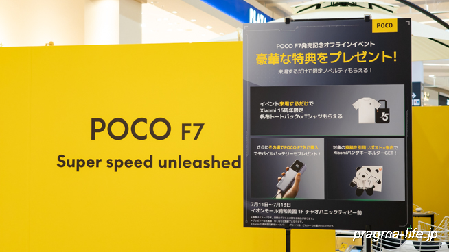 とにかく行くだけでPOCO F7が実際に触れるほか、特典も多数あるので興味のある方は是非ご来店を。