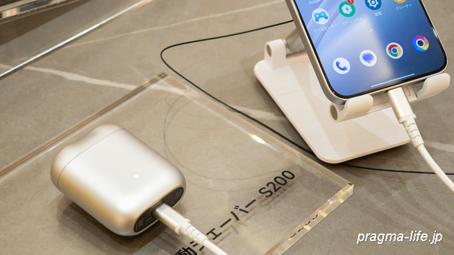 イベントスペースではPOCO F7の目玉機能の一つ「最大22.5Wの有線リバース充電」を実際に体験できるようになっています。